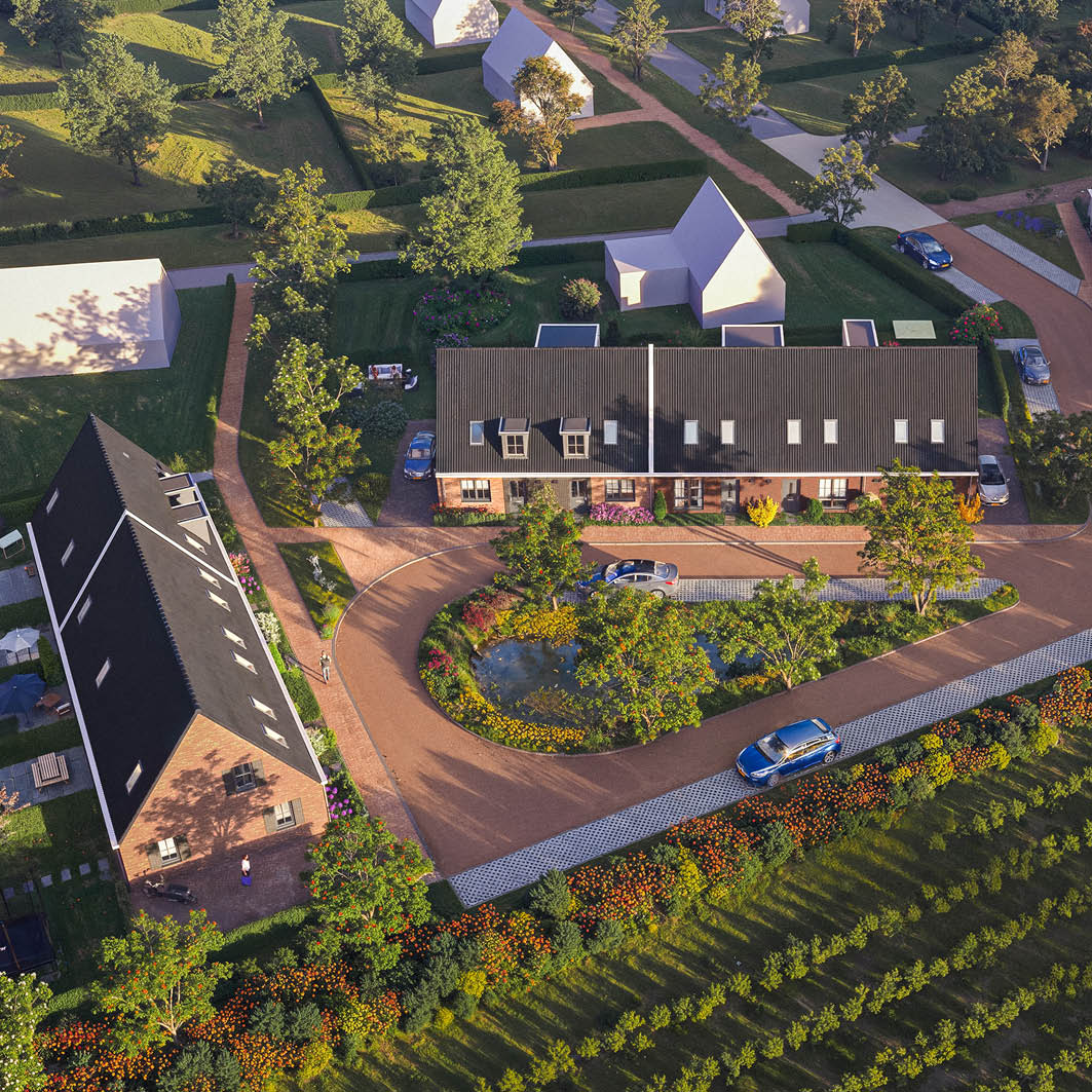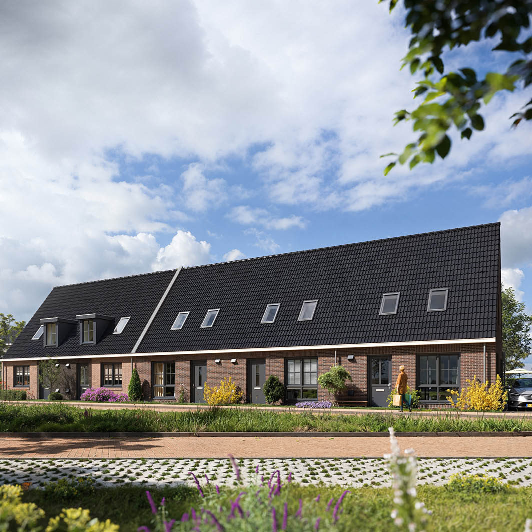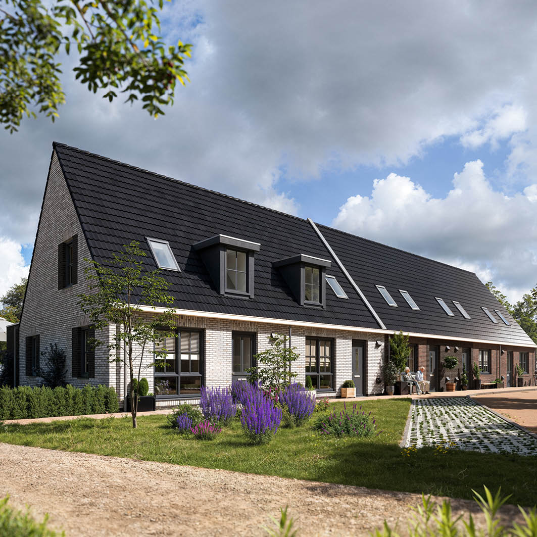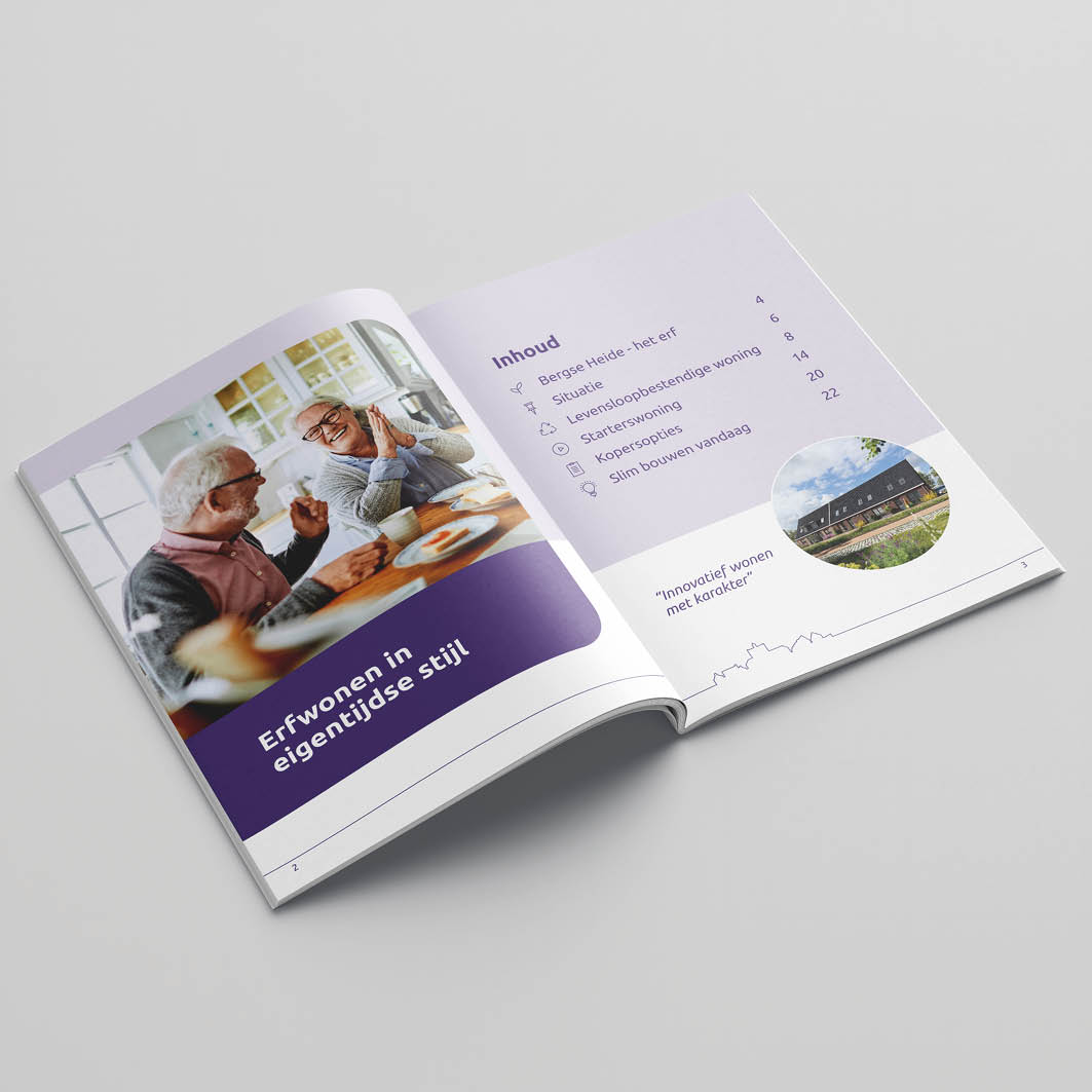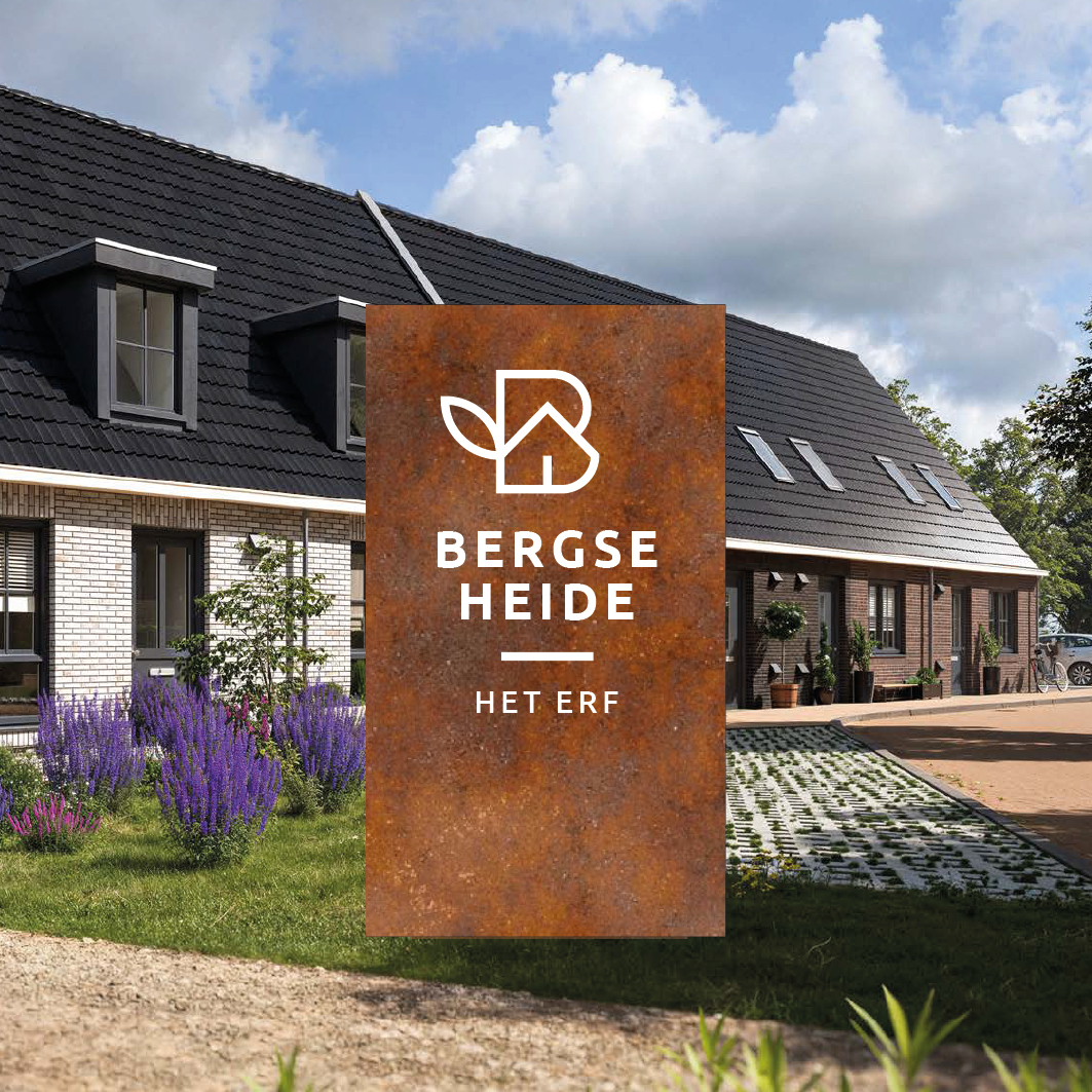 Het logo vertelt het verhaal van het project: de B verwijst naar Bergse Heide, het blad staat voor wonen in het groen en groei, en het huis met voordeur symboliseert een warm en veilig thuis waar mensen zich welkom voelen. Opdracht: logo, huisstijl en verkoopbrochure